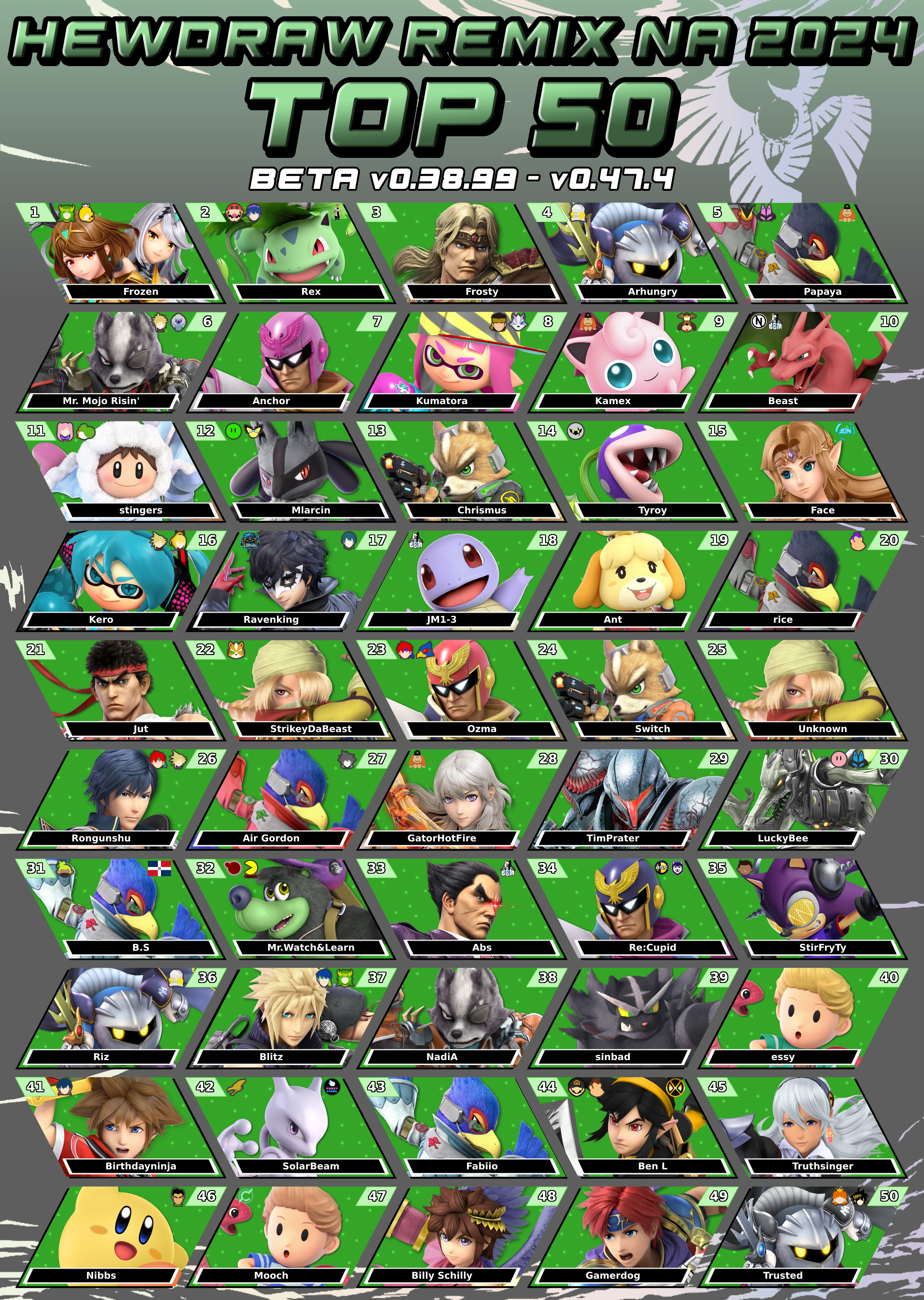 HDRank 2024 is a list of North America's best HewDraw Remix players in the year 2024. From February 17th to February 26th, the top 50 HDR players will be revealed as we celebrate their accomplishments this past season.